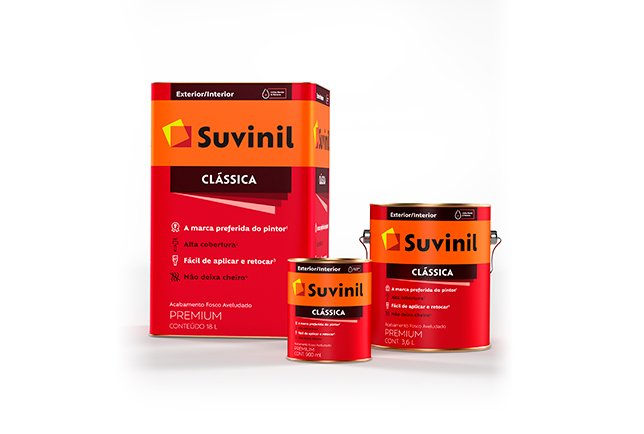 Suvinil Clássica é a nossa tinta mais tradicional e a marca preferida do pintor. Ela possui alta cobertura, o que a torna muito versátil na hora da pintura. Por não deixar cheiro, também é indicada para dentro de casa. É uma tinta de parede fácil de aplicar e com uma grande variedade de tons, consulte o nosso leque de cores para ver qual combina mais com você.